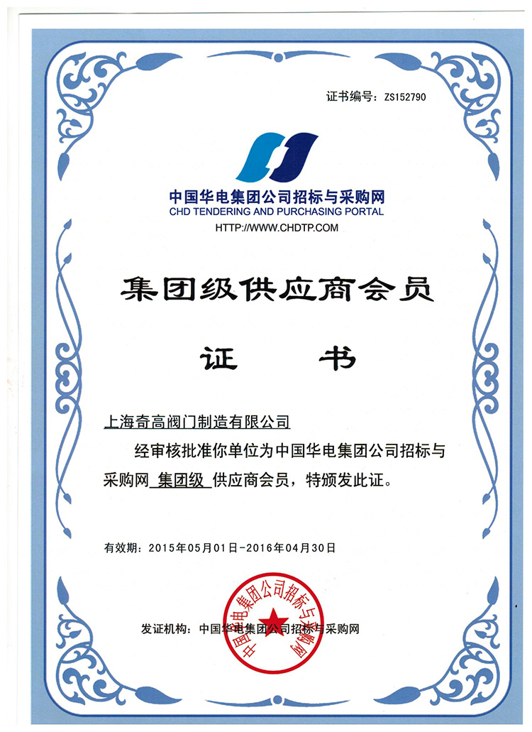 2019-12-18 關(guān)注次數(shù):2015年5月1日,上海奇高閥門制造有限公司(http://www.zxtys.com)經(jīng)過中國華電集團(tuán)公司招標(biāo)與采購網(wǎng)的嚴(yán)謹(jǐn)?shù)膶徍耍赃^硬的資質(zhì)力量獲得了中國華電集團(tuán)公司招標(biāo)與采購網(wǎng)的集團(tuán)級供應(yīng)商會員證書。特此祝賀。經(jīng)過中國華電集團(tuán)公司招標(biāo)與采購網(wǎng)的嚴(yán)謹(jǐn)?shù)膶徍耍赃^硬的資質(zhì)力量獲得了中國華電集團(tuán)公司招標(biāo)與采購網(wǎng)的集團(tuán)級供應(yīng)商會員證書。特此祝賀。經(jīng)過中國華電集團(tuán)公司招標(biāo)與采購網(wǎng)的嚴(yán)謹(jǐn)?shù)膶徍耍赃^硬的資質(zhì)力量獲得了中國華電集團(tuán)公司招標(biāo)與采購網(wǎng)的集團(tuán)級供應(yīng)商會員證書。特此祝賀。