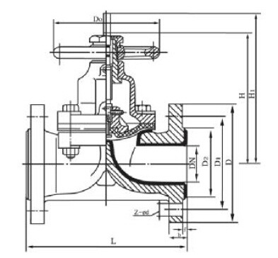 襯氟隔膜閥基本系列為全襯里G41F46、EG41F46、型堰式和G45F46型直流式。復合隔膜閥將閥體下部內腔與閥蓋內腔隔開,并與之形成直流通道,使隔膜上部的閥桿、閥瓣等內件與介質完全隔離,省去填料密封結構,介質的內漏和外漏可同時避免。表面均勻包覆一層FEP。閥體通道內表面光滑,流體阻力小,CV值高,流通能力強,扭矩適中,采用四級密封結構并在密封面外配以耐溫抗老化的SI橡膠的彈性襯墊閥座,完全達到介質的零泄漏。