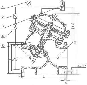 When the pipe feeds water from the inlet end, the water flows through the needle valve into the main valve control room, and the outlet pressure acts on the guide valve through the pipe. When the outlet pressure is higher than the set value of the guide valve, the guide valve closes and the control room stops draining. At this time, the main valve control room pressure rises and closes the main valve, and the outlet pressure no longer rises.