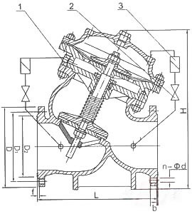 當水泵起動起后,水壓作用于主閥閥盤下面和控制室下腔,此壓力使主閥開啟,控制室上腔的水經過調節閥B緩緩排到出口端,主閥緩緩開啟。設定調節閥的開度可合適地主閥開啟速度。當水泵停止工作后,進口端水壓迅速下降,在自重、彈簧壓力作用下快速關閉大部分開度,防止了水倒流余下的開度由控制室上腔的水壓和下腔水壓聯合作用下緩緩關閉,關閉速度減慢形成了緩沖,防止壓力劇增。