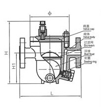 該閥利用浮力原理,浮球根據(jù)凝結(jié)水量的多少隨水位的變化而作升降,自動調(diào)節(jié)閥座孔的開度,連續(xù)排放凝結(jié)水。當(dāng)凝結(jié)水停止進入時,浮球靠自重降到底部,關(guān)閉排水閥座孔。由于排水閥座孔在凝結(jié)水位以下,水汽自然分離,形成水封,達到無蒸汽泄漏。