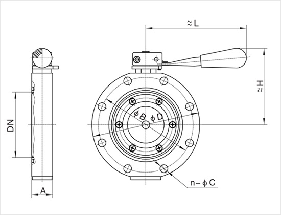 型號 | 通徑(DN) | ΦD | ΦB | H | A | L | n-ΦC |