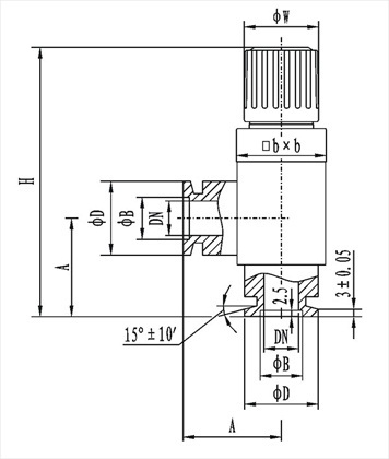 型號 | 通徑(DN) | ΦD | ΦB | ΦW | H | A | bxb |