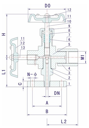 公稱通徑 DN | M1 | B | L1 | L2 | H | D0 |